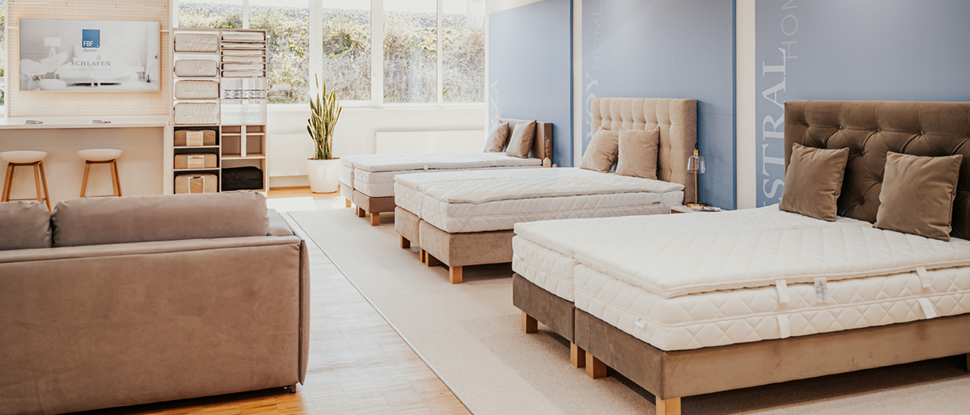 Testen Sie ab sofort unsere Betten, Matratzen, Topper und Schlafsofas vor Ort in unserem Showroom