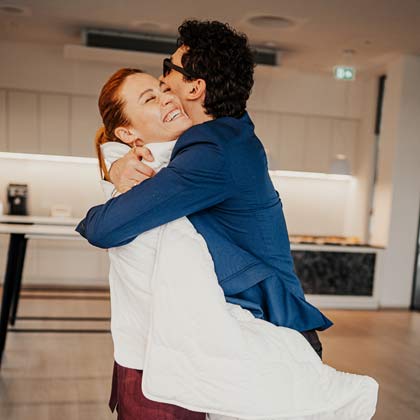 Die beiden Tänzer haben sich für unser Premium-Modell Mistral entschieden. Welches durch seinen eingebauten Tonnentaschen-Federkern besten Schlafkomfort ermöglicht. Dieser ist punktelastisch und passt sich perfekt dem Körper an. Ein 3-D-Meshgewebe sorgt für die optimale Durchlüftung. Darauf liegt unsere Dura Home Tonnentaschen-Federkernmatratze, passend nach Körpergewicht in H2 und H3. Um die "Besucherritze" zu schließen, liegt ein durchgehender Topper auf für ein noch wohligeres Schlafgefühl. Hier finden Sie alle Produkte im Überblick: