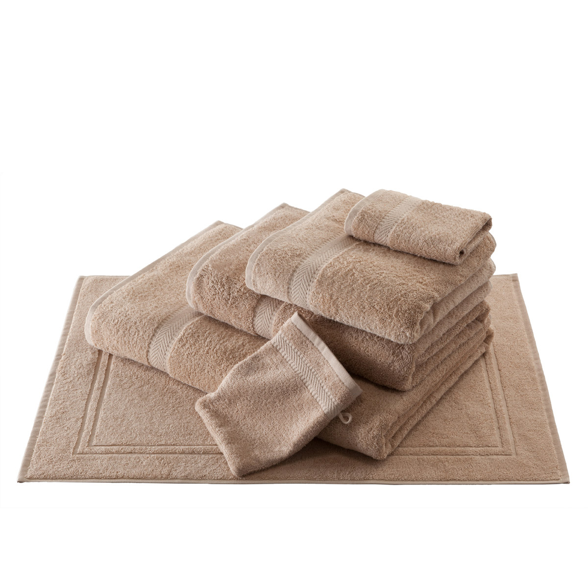 5-Sterne-Hotels setzten bei ihren Zimmern auf eine erstklassige Einrichtung. Hochwertige Betten, Bettwaren und Frottier-Produkte sind hierfür grundlegend. Als marktführender Hersteller exklusiver Hotellerie-Ausstattung bieten wir nicht nur Bettwaren, sondern auch erstklassige Walkfrottier Hand- und Duschtücher an. Mit den weichen Imperial-Handtüchern führen wir eine Linie von bester Qualität. Die Produkte sind zu 100 % aus reiner Baumwolle, woraus ein saugfähiges, anschmiegsames und schnell trocknendes Walkfrottier entsteht. Die Imperial-Linie besteht aus den Komponenten Waschhandschuh (15x20 cm), Gästehandtuch (30x50 cm), Handtuch (50x100 cm), Duschtuch (70x140 cm), Badetuch (100x150 cm) und Badvorleger (50x70 cm). Weiterhin können Sie die Imperial Handtücher in den Farben Weiß, Creme, Cappuccino, Hellgrau, Gold, Lachs, Mint, Azur oder Apfel online bestellen. Die Hotel-Handtücher sind bis 60°C waschbar und für den Trockner geeignet. Selbst nach jahrelanger Benutzung und unzähligen Waschvorgängen behält dieses Material seine Form und Qualität.